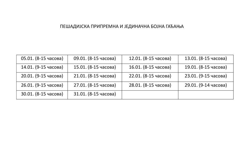 Јединице Војске Србије током јануара месеца 2026. године изводиће пешадијска гађања на ВК “Шуматовац“ у Алексинцу.