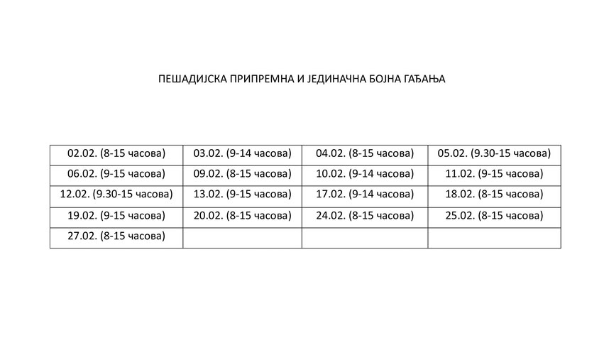 Јединице Војске Србије током фебруара месеца 2026. године изводиће пешадијска гађања на ВК “Шуматовац“ у Алексинцу.